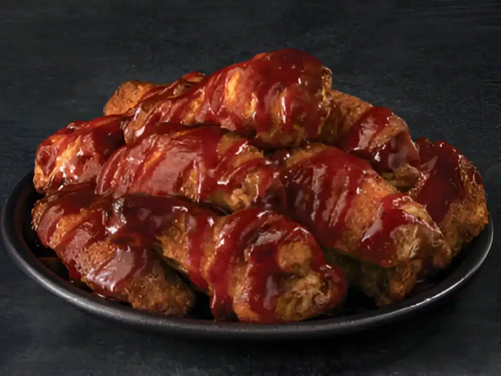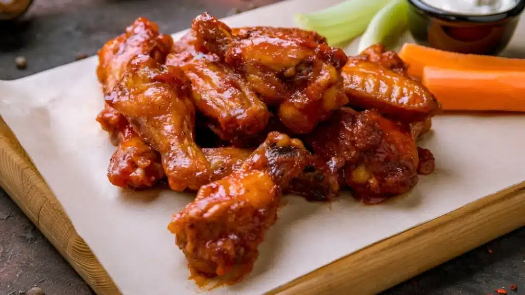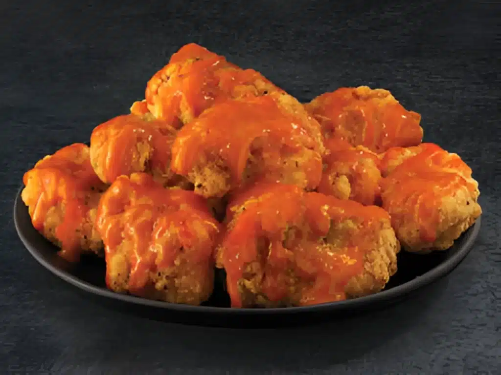 It depends on sauce and whether they’re traditional or boneless. A common range is ~60–100+ cal per wing/piece, with BBQ and Garlic Parmesan trending higher.