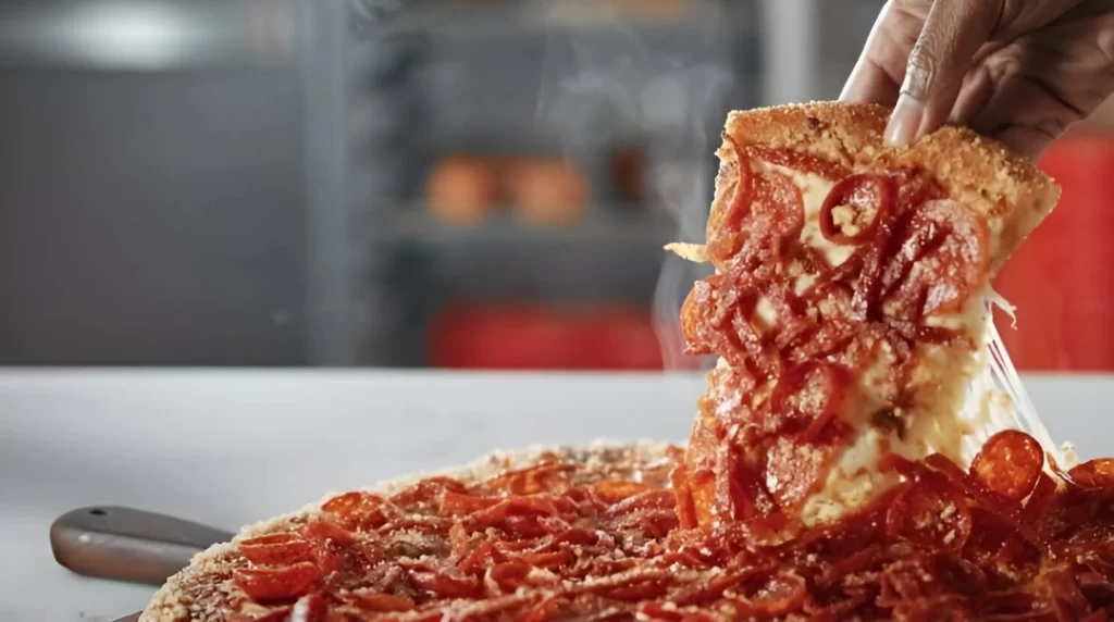 Signature Old World Spice, generous cupped pepperoni, and a balanced sauce-to-cheese ratio that keeps slices flavorful without sogginess. (Taste claims are subjective—try the Pepperoni Magnifico side-by-side to judge.)